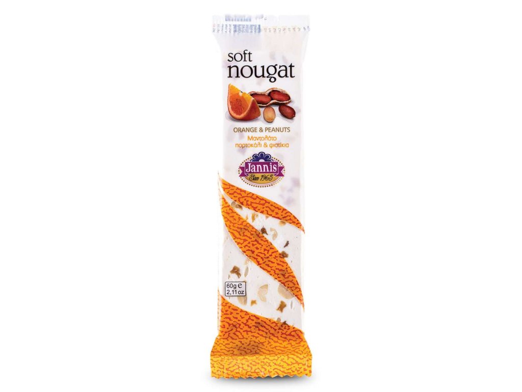 JEMNÝ NUGÁT S POMERANČEM A ARAŠÍDY, s cukrem 60 g